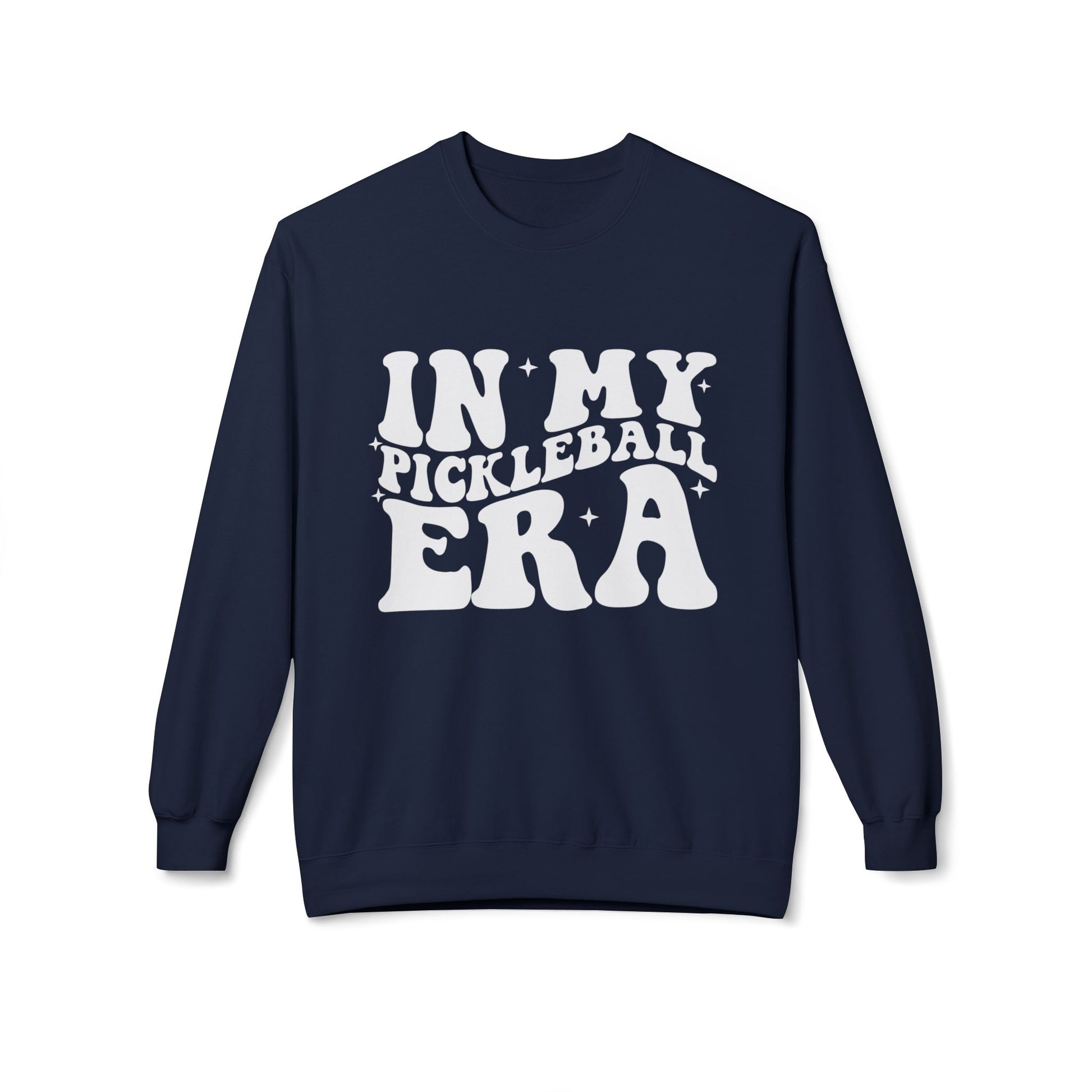 This pickleball sweatshirt features "In my pickleball era' text on the back, making it a great Christmas gift for pickleball enthusiasts. The relaxed fit and feel, along with the classic design, brings a cozy and sporty vibe to any pickleball player's wardrobe. Perfect for holiday gifting or casual wear on the court.